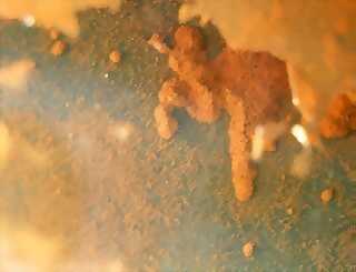 Using the BART test with three holes drilled through the bottom on the underside, and putting the bart on to mild steel, when water was added the bacteria began to grow on the steel to make rusticle-like structures. The steel underneath became pitted as the iron was eaten away by the bacteria.