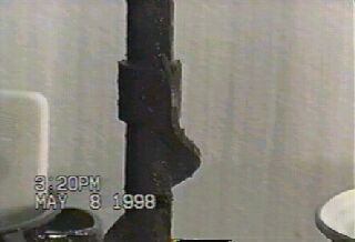 It was postulated that the P\A was simply a mass of paraffins and anthracenes that had become bioaccumulated around and within biofilms. To determine this, some P/A plugged 2" steel distribution pipe was treated with the surfactant CB-4. This surfactant has been used for years in the water well industry as a part of a technology to rehabilitate plugged water wells. CB-4 has a superior ability to attack and destroy the polymeric structures that support the biofilm particularly when the temperatures are elevated 40 or 50oC. The other factor is that the CB-4 becomes biocidal once the concentrations are raised above 0.7%. This technology therefore used a combination of heat and biocidal strength surfactant to attack the P\A black goop. At 57oC it was found that the P\A (left) become unstable and sheared away from the walls leaving the pipe clean again (right).